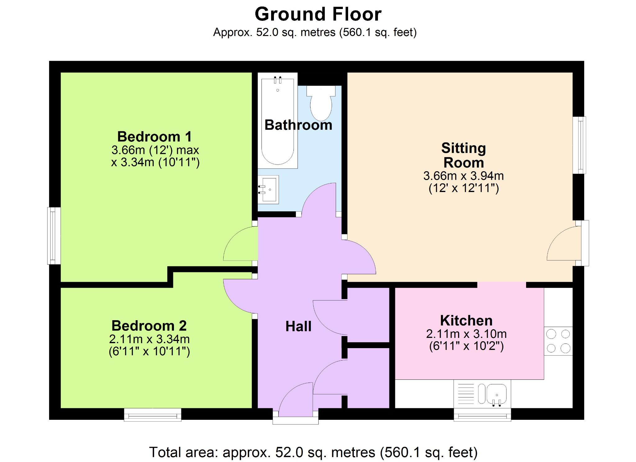The property is accessed via a private entrance at ground level and features bright and well-proportioned accommodation. The spacious reception room enjoys plenty of natural light, perfect for relaxing or entertaining guests. The newly fitted kitchen has been thoughtfully designed with a range of contemporary units, integrated appliances and stylish finishes. Both bedrooms offer ample space for furnishings, and the newly refitted bathroom provides a sleek three-piece suite with quality fixtures and fittings.