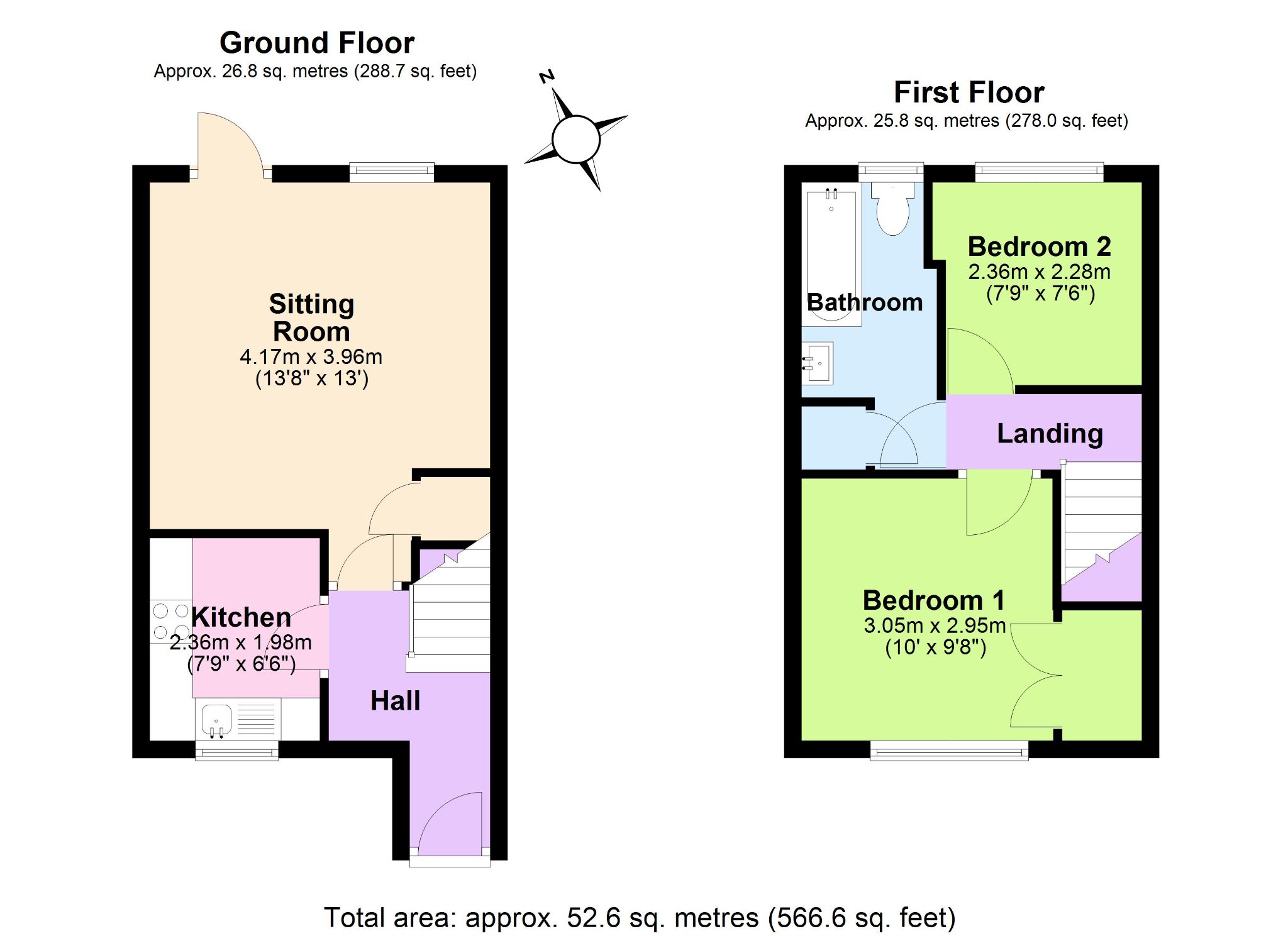 Built in 1994 by Builders Ede, this two bedroomed home has a fitted kitchen to the front and a well-proportioned sitting room to the rear of the ground floor, while the enclosed rear garden provides a private outdoor haven ideal for summer days or weekend barbecues. Upstairs, two bedrooms offer comfortable accommodation, supported by a modern family bathroom. The original wooden-framed double glazing and gas central heating throughout the home enhance energy efficiency and year-round comfort.