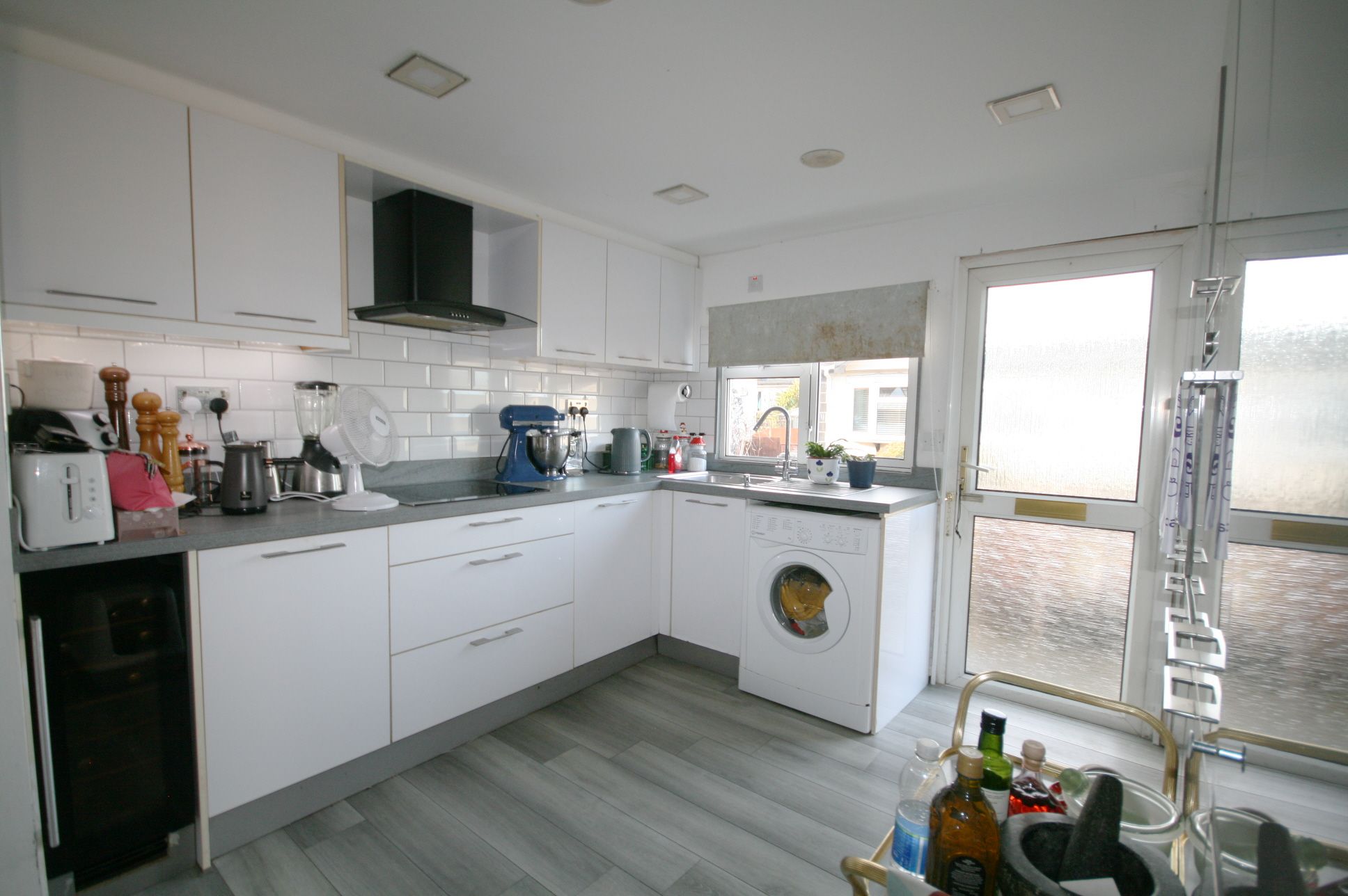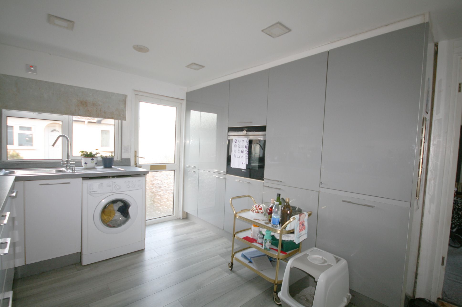 UPVC double glazed door and window to front. Good quality fitted kitchen comprising a range of fitted base and eye level units with worktop space over, stainless steel sink with single drainer, integrated appliance including fridge/freezer, slimline dishwasher and washing machine, built-in eye-level electric oven, built-in four ring hob.