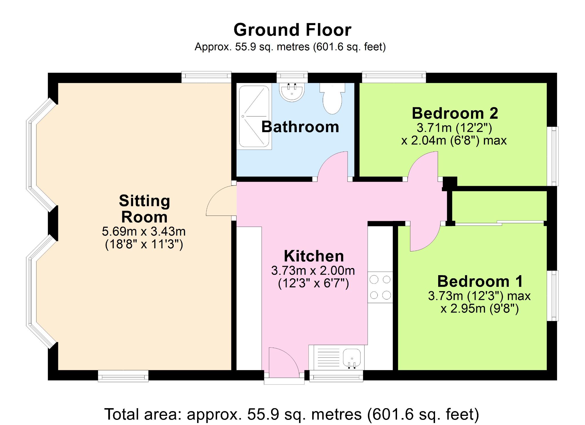 3.73m (12'3") x 2.00m (6'7")